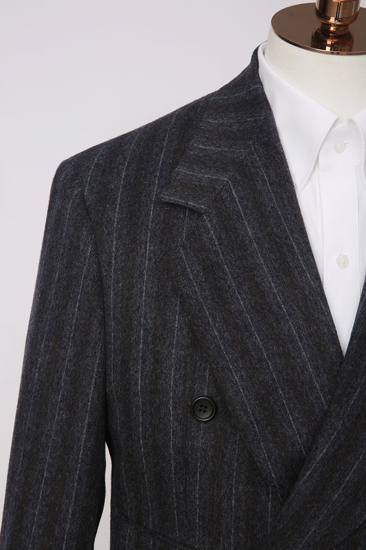 Wool-Cashmere Striped Double-Breasted Jacket