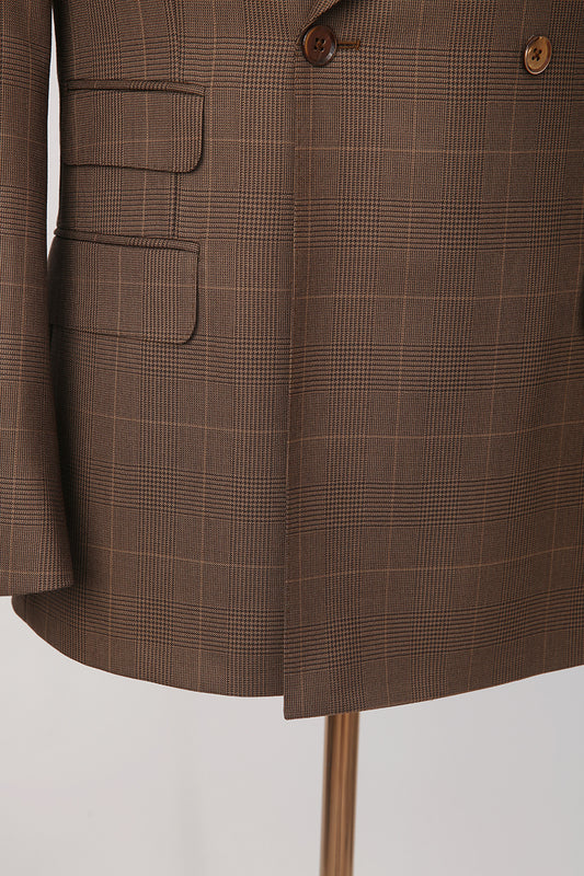 Prince of Wales Wool Double-Breasted Jacket