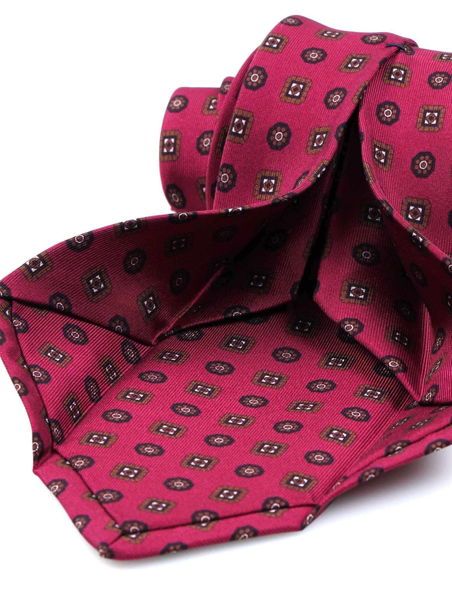 Dark Red 7 Fold STEFANIA Luxury Printed Silk Tie