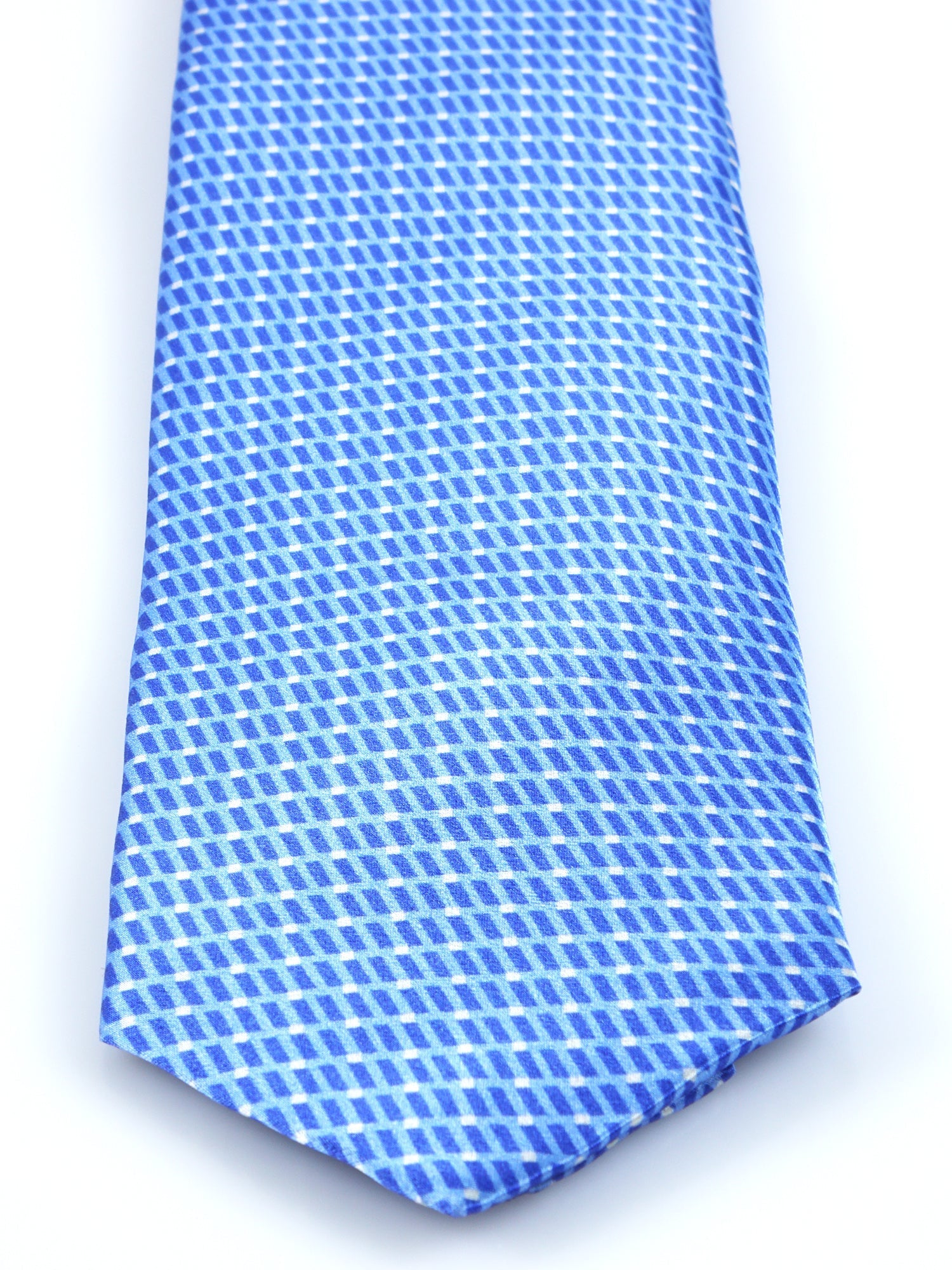 Cut and finished by hand in pure silk in Blue, suited to refined wardrobes.